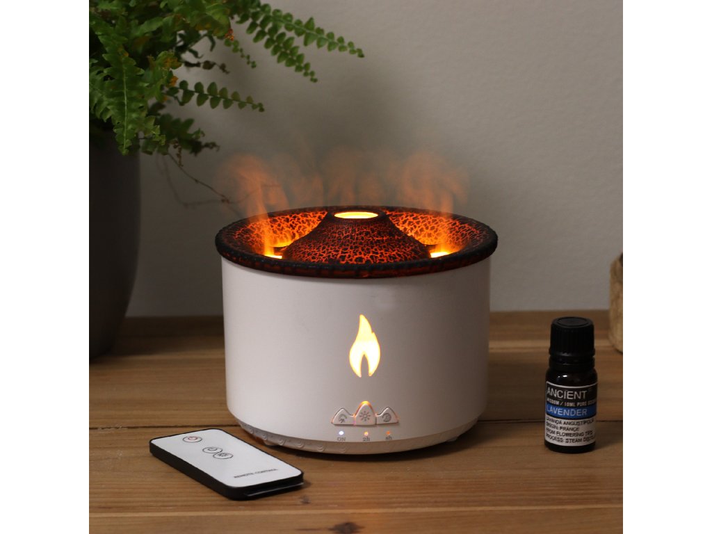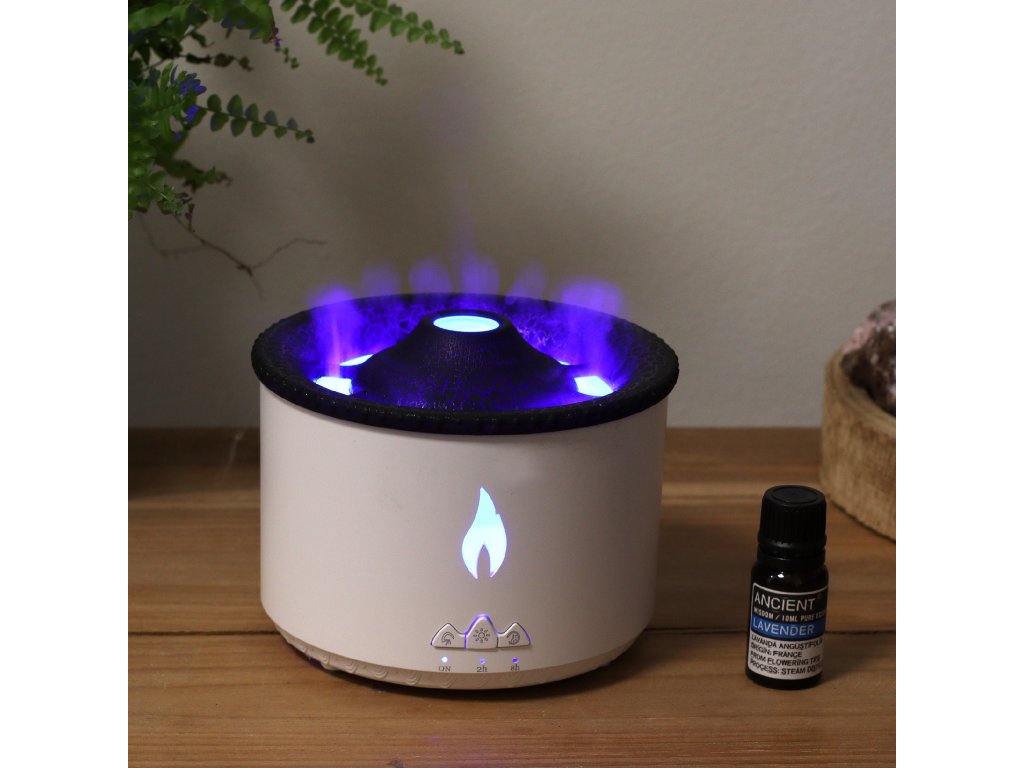 Přidejte určité množství vody a několik kapek vašeho oblíbeného esenciálního oleje, abyste zlepšili svůj aromaterapeutický zážitek. Lehká mlha, kterou tento zvlhčovač vytváří, vytváří úžasný 3D plamen nebo vulkanický efekt, který vám umožňuje nastavit mezi teplými žlutými plameny a studenými modrými plameny.