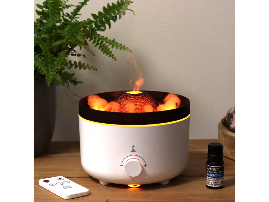 Přidejte určité množství vody a několik kapek vašeho oblíbeného esenciálního oleje, abyste zlepšili svůj aromaterapeutický zážitek. Lehká mlha, kterou tento zvlhčovač vytváří, vytváří úžasný 3D plamen nebo vulkanický efekt, který vám umožňuje nastavit mezi teplými žlutými plameny a studenými modrými plameny.