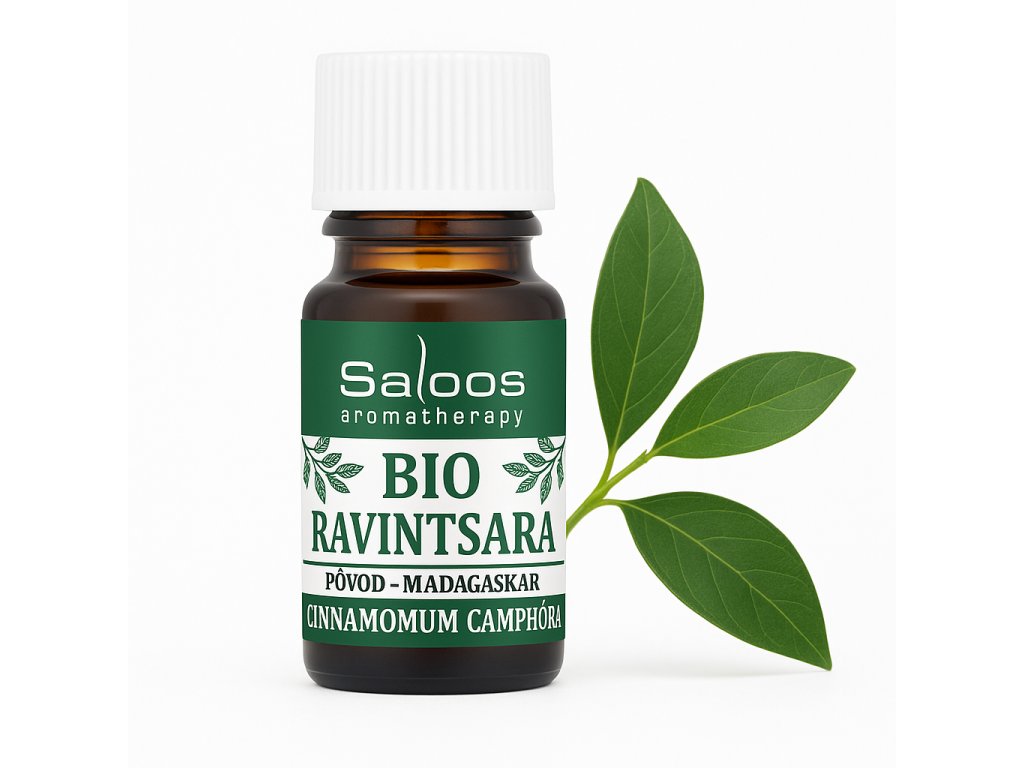 Ravintsara je známá svými antivirovými a antimikrobiálními účinky. V aromaterapii je považována za účinného pomocníka při chřipce a nachlazení. Uvolňuje dýchací cesty, napomáhá vykašlávání a zlepšuje dýchání. Esenciální olej v nejvyšší bio kvalitě svou velmi svěží kafrovou vůní čistí a osvěžuje vzduch pro rychlé dodání energie a lepší soustředění.