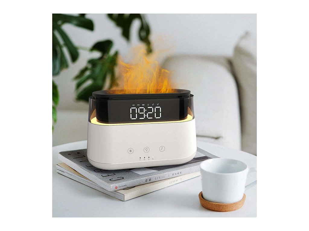 Moderní Aroma Difuzér - LED Hodiny - USB-C - Efekt Plamene